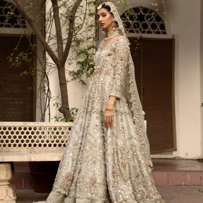 Celestial Mist – Mint & Rose Gold Embellished Lehenga Set in Organza and Silk